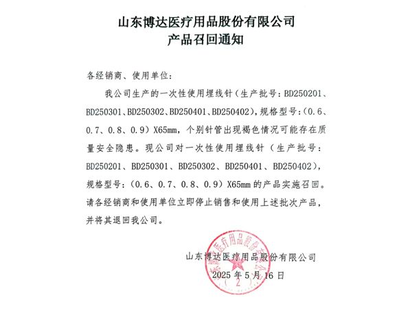 山東博達醫(yī)療用品股份有限公司是生產可吸收性外科縫線專業廠家,主要產品有可吸收縫合線 、內窺鏡圈套線、可吸收外科縫線、快吸收美容線、醫(yī)用羊腸線 膠原蛋白線以先進的生物技術提取了健康哺乳動物內臟的膠原蛋白為基材,采用先進的工藝加工而成,線體的主要成分為高純度膠原蛋白,并獲得了國家發(fā)明專利,頒布了YZB/國6301-2013《可吸收性外科縫線》產品標準,并通過了ISO9001:2015和ISO13485:2016質量管理體系認證。